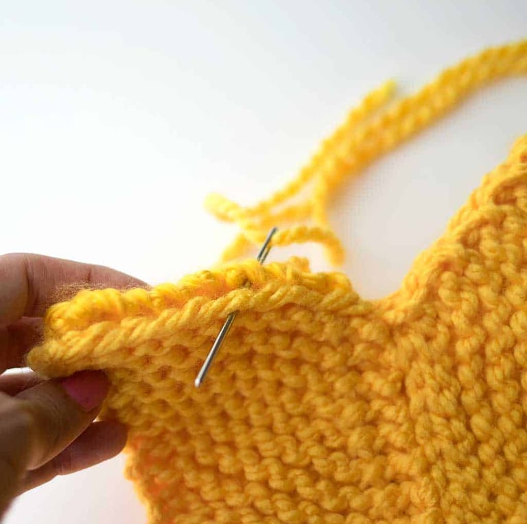 Hàng 1: k1, kfb, đan đến 3 mũi cuối, k2tog, k1 (13 mũi)