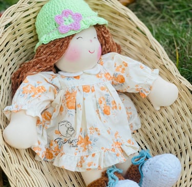 Búp bê có size 25-28 cm, da ngăm nâu, khuôn mặt yên bình. Mang năng lượng của ánh mặt trời, màu vàng vui tươi và ấm áp... dành cho cả bé trai và bé gái.